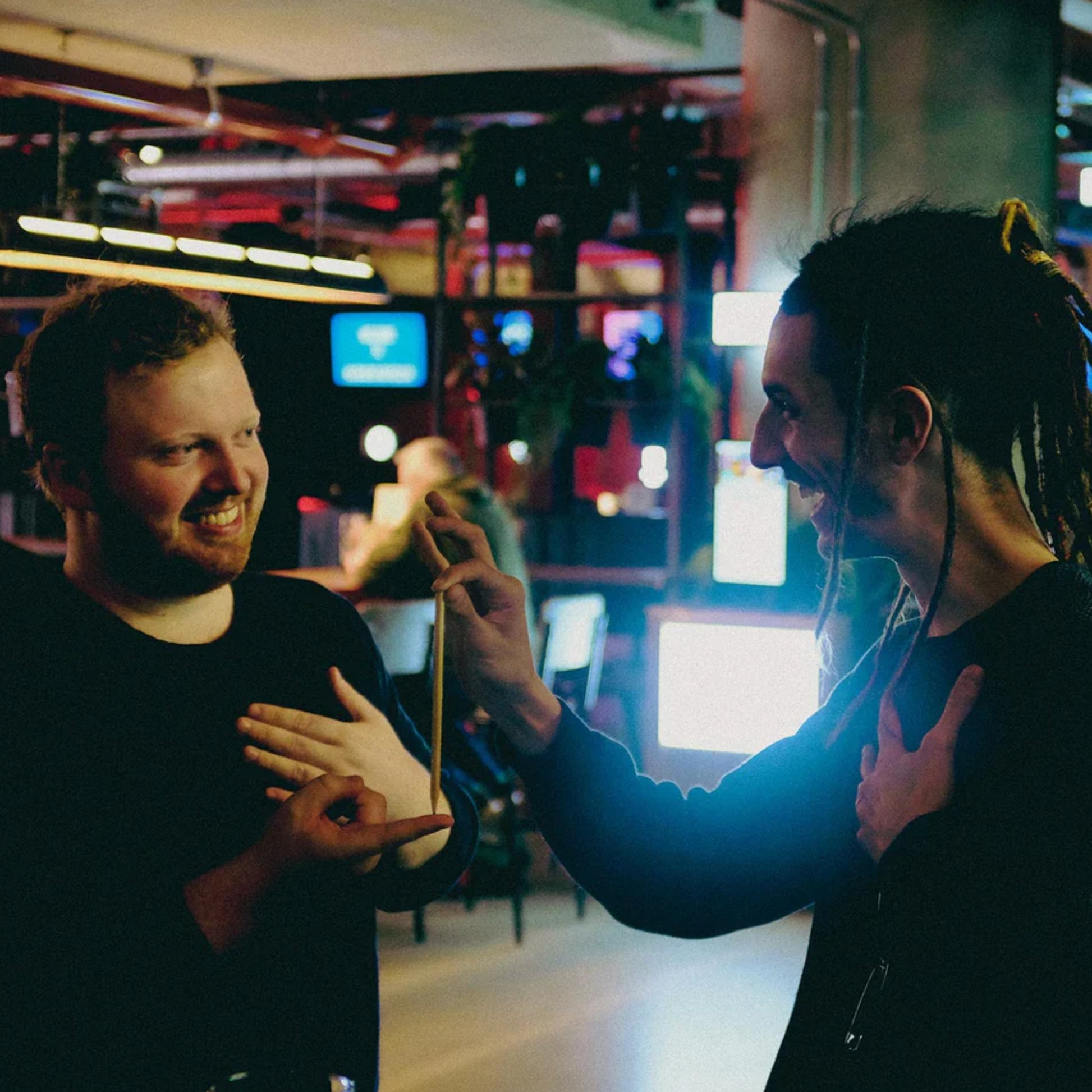 You place a pencil at pure fingertips, creating a connection between you and the spectator.